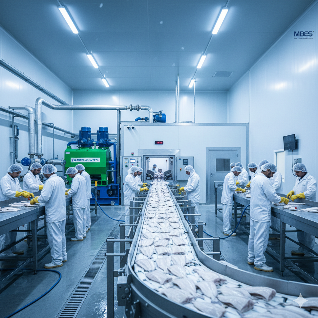MBES designs and installs high-capacity fish and meat processing facilities integrated with advanced Individual Quick Freezing and blast chilling technology, hygienic infrastructure that ensures food safety compliance.